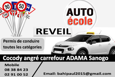 REVEIL AUTO ECOLE SUR TOUTS NOS SERVICES COCODY ANGRE CARREFOUR ADAMASANOGO 0708388423 0102910052 10%